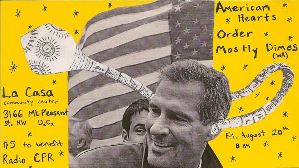 Seattle's Mostly Dimes played La Casa almost exactly a year ago this week. Last August they played as part of a benefit show on behalf of We Are Family. Well, they're playing another benefit this year. On August 20th (that's Friday) they'll play with DC's American Hearts and Order from Charlottesville. This time for DC's Radio CPR 97.5 who also had a movie benefit last week at La Casa (3166 Mt Pleasant Street NW). Show starts this Friday at 7:00pm. If you're feeling generous and care to donate, bring $5.00.