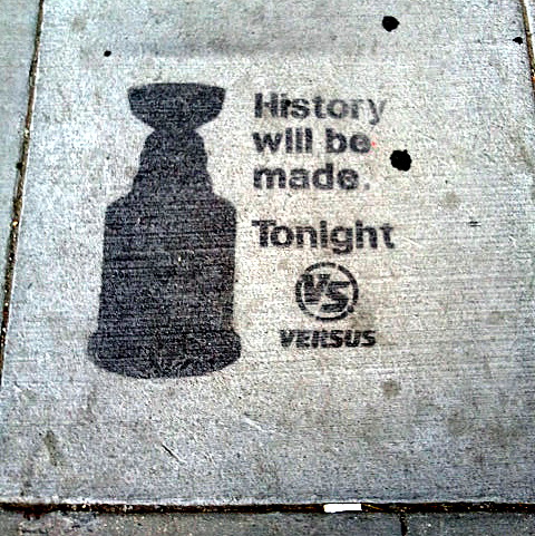 For all the work the spray painters put into it, DC residents had less than 5 chances to turn on Versus and actually see the Capitals play at home in the playoffs. Also, not that a Caps fan can't branch out, but I'm betting a lot of folks were less interested in watching the playoffs once the Capitals aren't around. Which leads me back to the sidewalk advertisements.